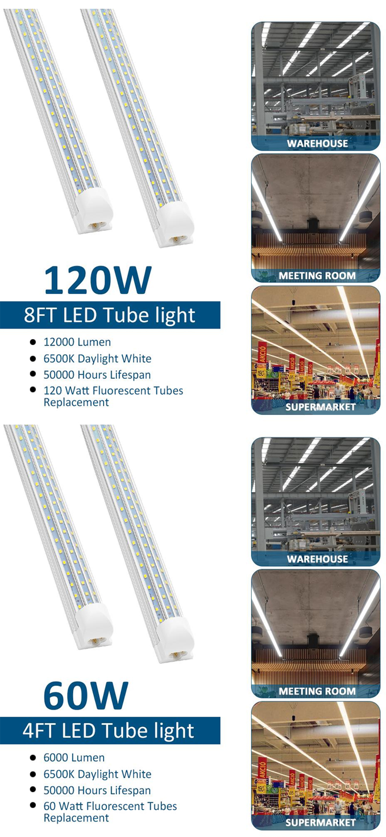 Advance V-Shaped 2ft 4ft 6ft 8ft Cooler Door Led Tubes T8 Integrated Led Tubes 120W D-Shaped Triple Row Lights fixture
